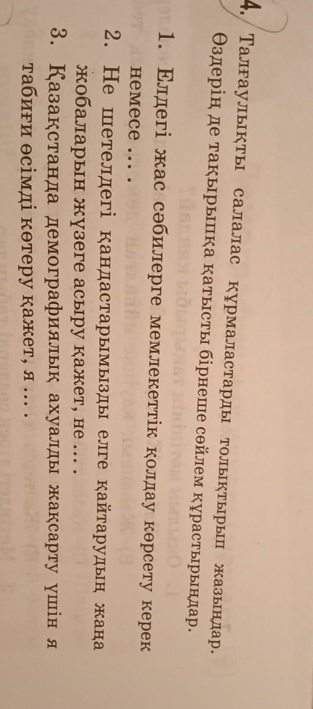 Талғаулықты салалас құрмаластарды толықтырып жазыңдар. Өздерің де тақырыпқа қатысты бірнеше сөйлем құрастырыңдар.