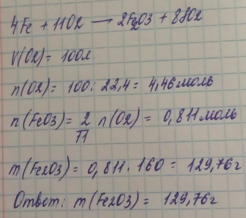 если известен объем 1102 = 100л и неизвестна масса 2Fe203