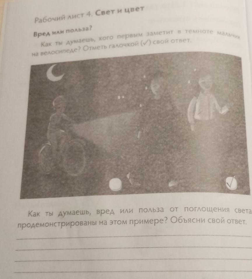 на данном примере продемонстрированные вред от поглощения света, так как мальчик может нанести увечия прохожему мимо из-за того, что темный цвет одежды поглощает свет
