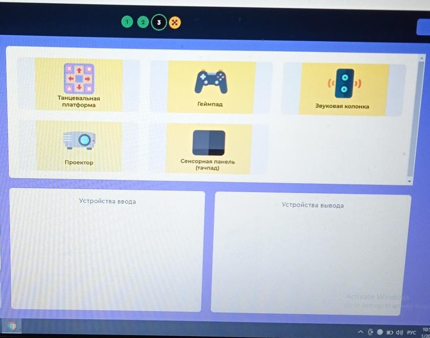 устройство ввода сенсорная панель тачпад, геймпад. А средства вывода проектор танцевальная платформа звуковая колонка. вроде так