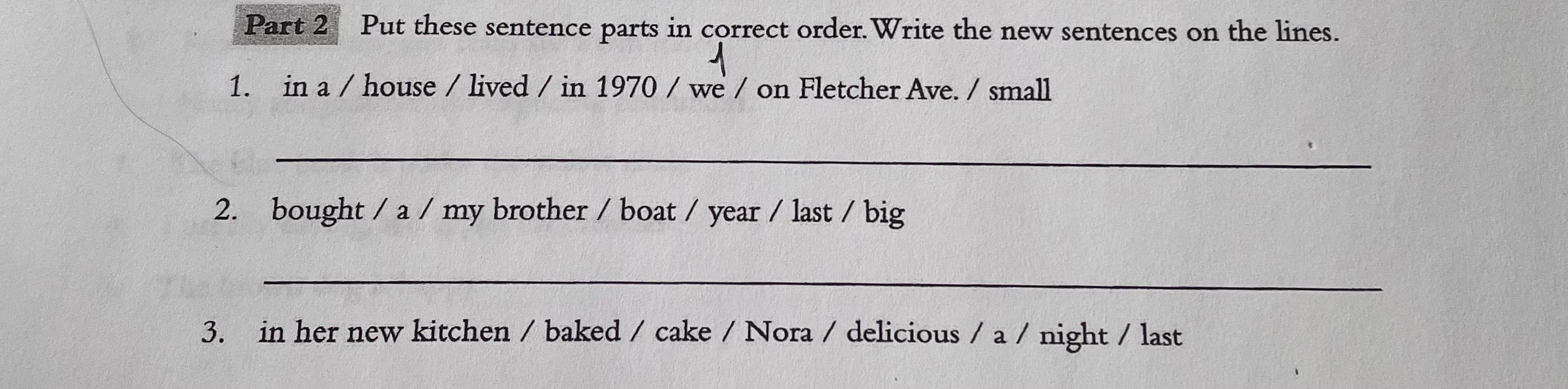 3.Last night Nora baked a delicious cake in her new kitchen.