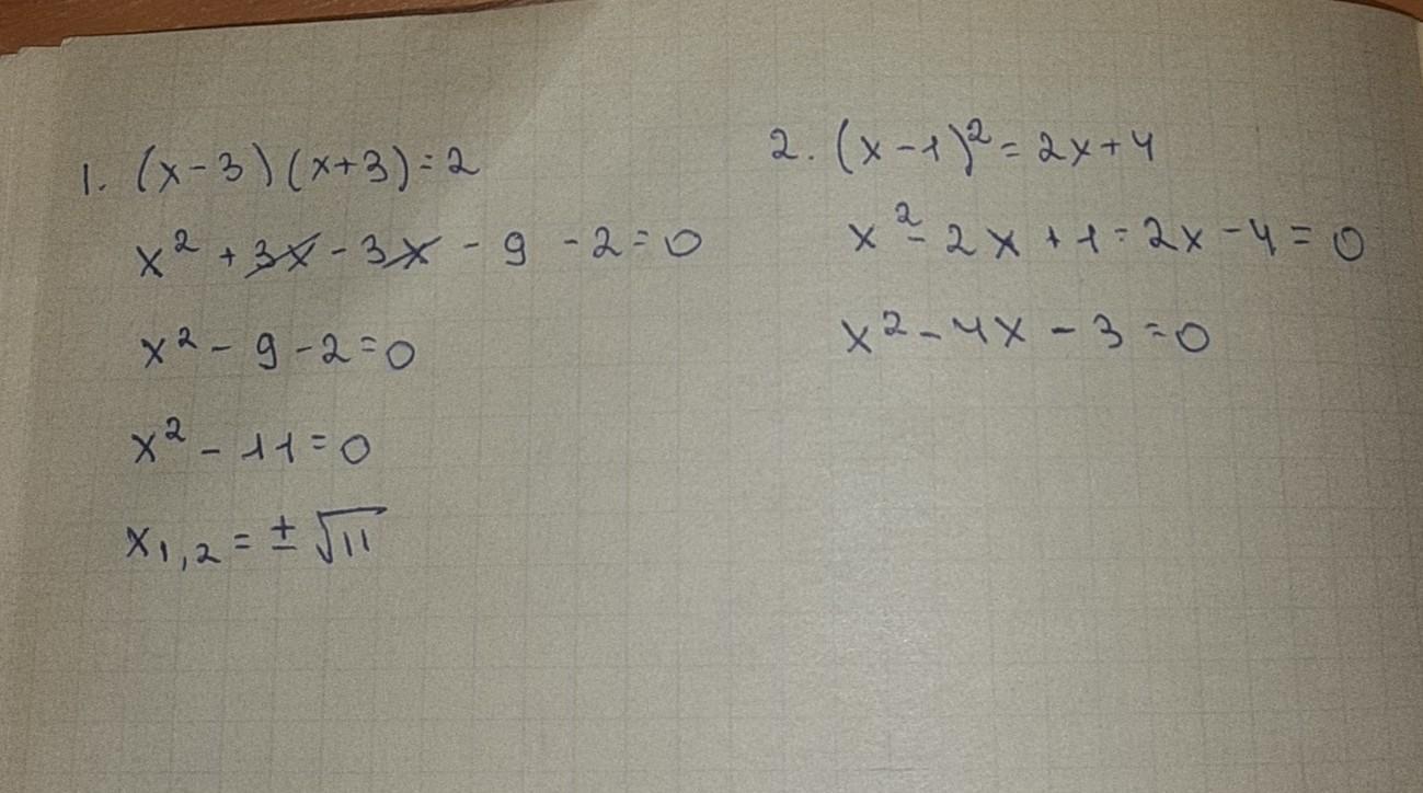 1. (x-3)(x+3)=2