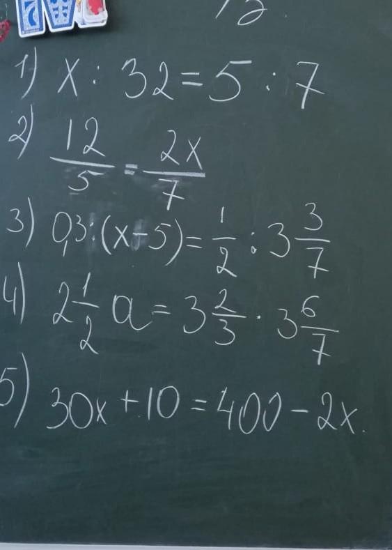 0,3:(x-5)= 1/2× (7/24) => (x-5)×7= 48×0,3