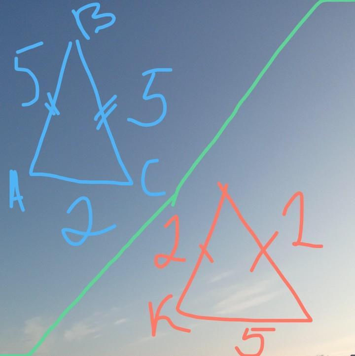 поскольку это равнобедренный треугольник то его две стороны должны быть одинаковой длины