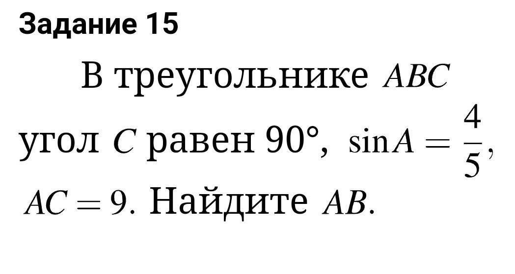 AB = AC/cosA = 9 : 3/5 = 9·5 / 3 = 15