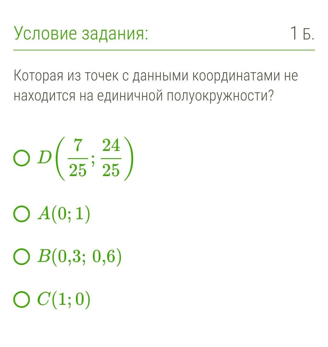- уравнение единичной окружности. Ему не удовлетворяет точка B