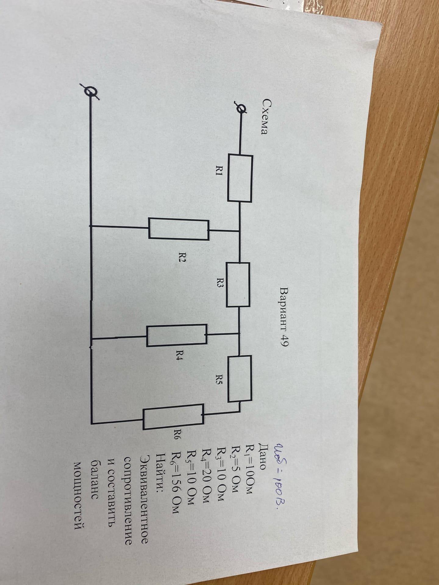 найти: эквивалентное сопротивление и составить баланс мощностей