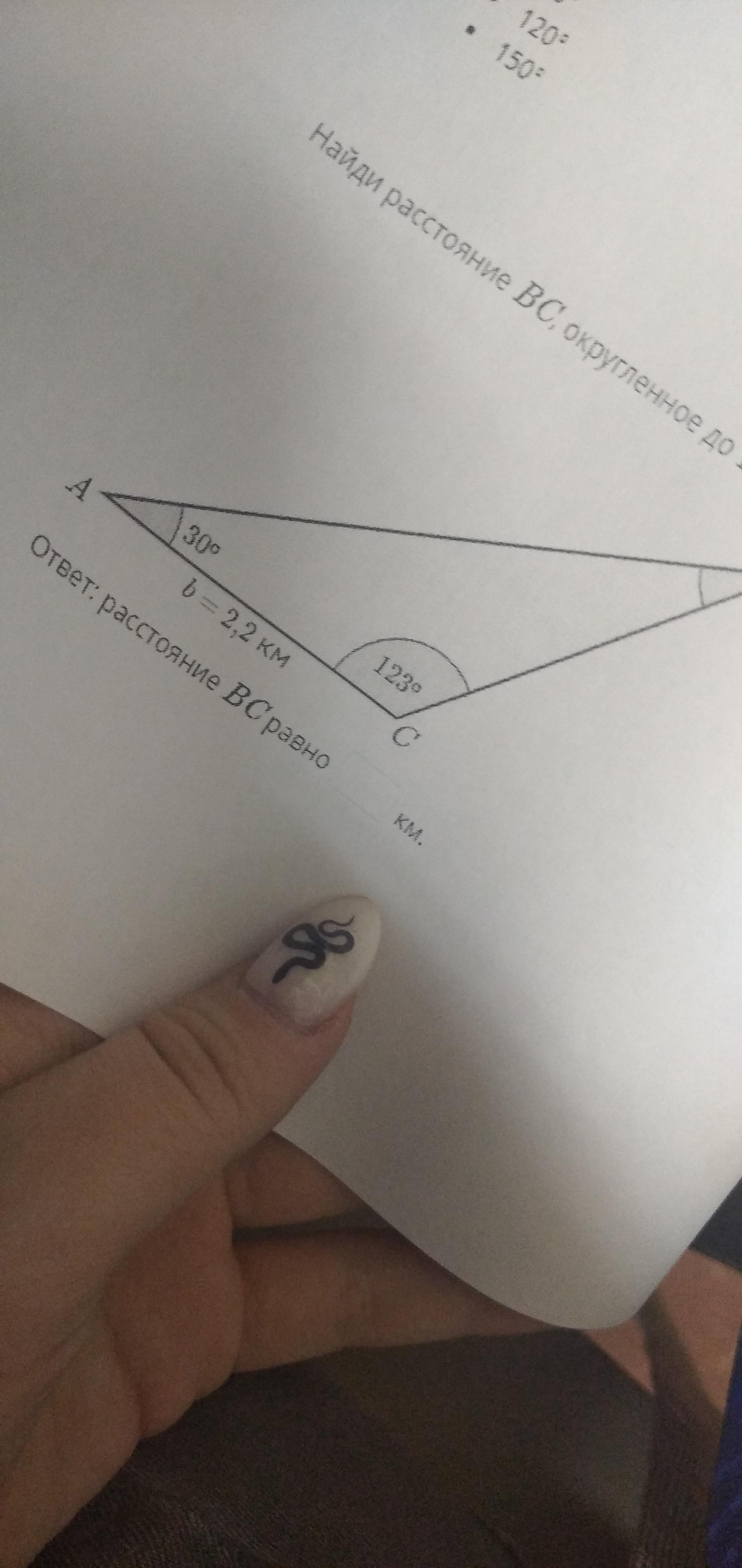 найдите расстояние вс округленное до 1 знака после запятой используя теорему синусов