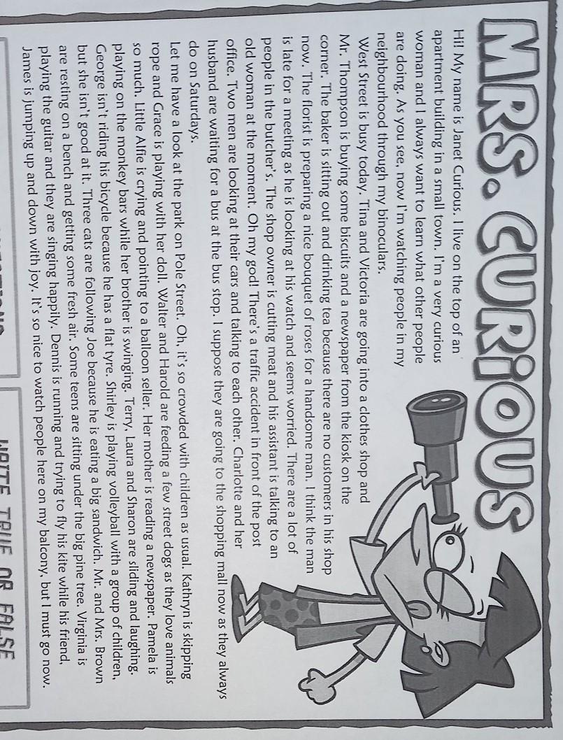 1. What is Mrs. Curious doing at the moment?