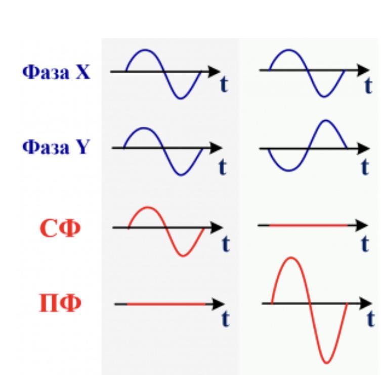 При описании распространения сигнала или помехи в электропроводной среде часто употребляются термины синфазный (СФ) и противофазный (ПФ). Эти термины употребляются тогда, когда в рассматриваемой системе есть две точки (два полюса) приложения сигнала (помехи): условно X и Y, как показано на рисунке. СФ сигнал действует с одной и той же фазой на точки X и Y приложения сигнала относительно условного нуля или некой третьей опорной или общей точки. ПФ сигнал действует с противоположной фазой (противоположным знаком) на точки X и Y приложения сигнала относительно внешней среды. Поэтому, противофазный сигнал также часто называют дифференциальным, подразумевая его "разностную" сущность.