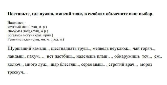 Шуршащий камыш (сущ., м.р.), шестнадцать груш (сущ., мн.ч., Род.п.), медведь неуклюж (кр.прилаг.), чай горяч (кр.прилаг.), ландыш пахуч (кр.прилаг.), нет пастбищ (сущ., мн.ч., Род.п.), наденешь плащ (сущ., м.р.), обнаружишь течь (сущ., ж.р.), еж колюч (кр.прилаг.), много луж (сущ., мн.ч., Род.п.), шар блестящ (кр.прилаг.), серая мышь (сущ., ж.р.), строгий врач (сущ., м.р), мороз трескуч (кр.прилаг.).