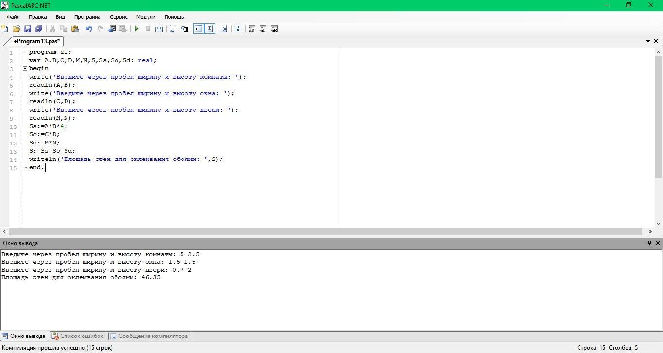 writeln('Площадь стен для оклеивания обоями: ',S);