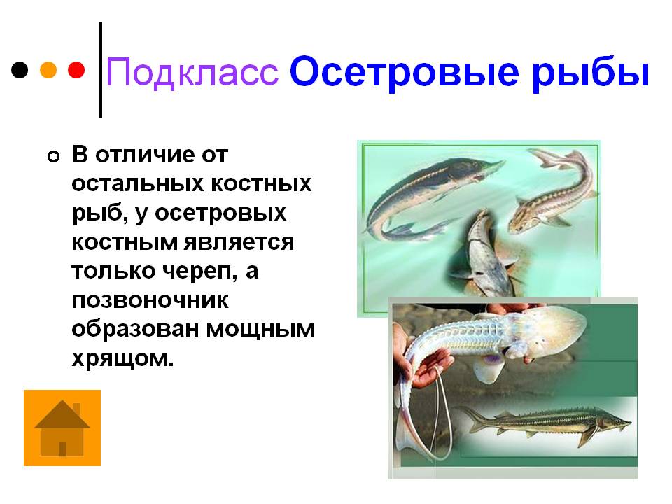 В отличие от остальных костных рыб, у осетровых костным является только череп, а позвоночник образован мощным хрящом.