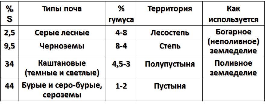 В лесостепной зоне наибольшее распространение получили под лесными насаждениями серые лесные почвы. Мощность гумусового горизонта — 30—60 см, содержание гумуса — 3,0—5,0%.