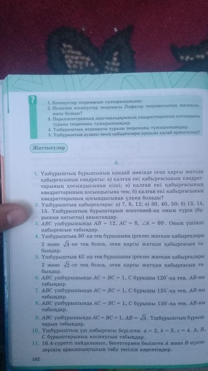 косинустар теоремасы бойынша шығарылады