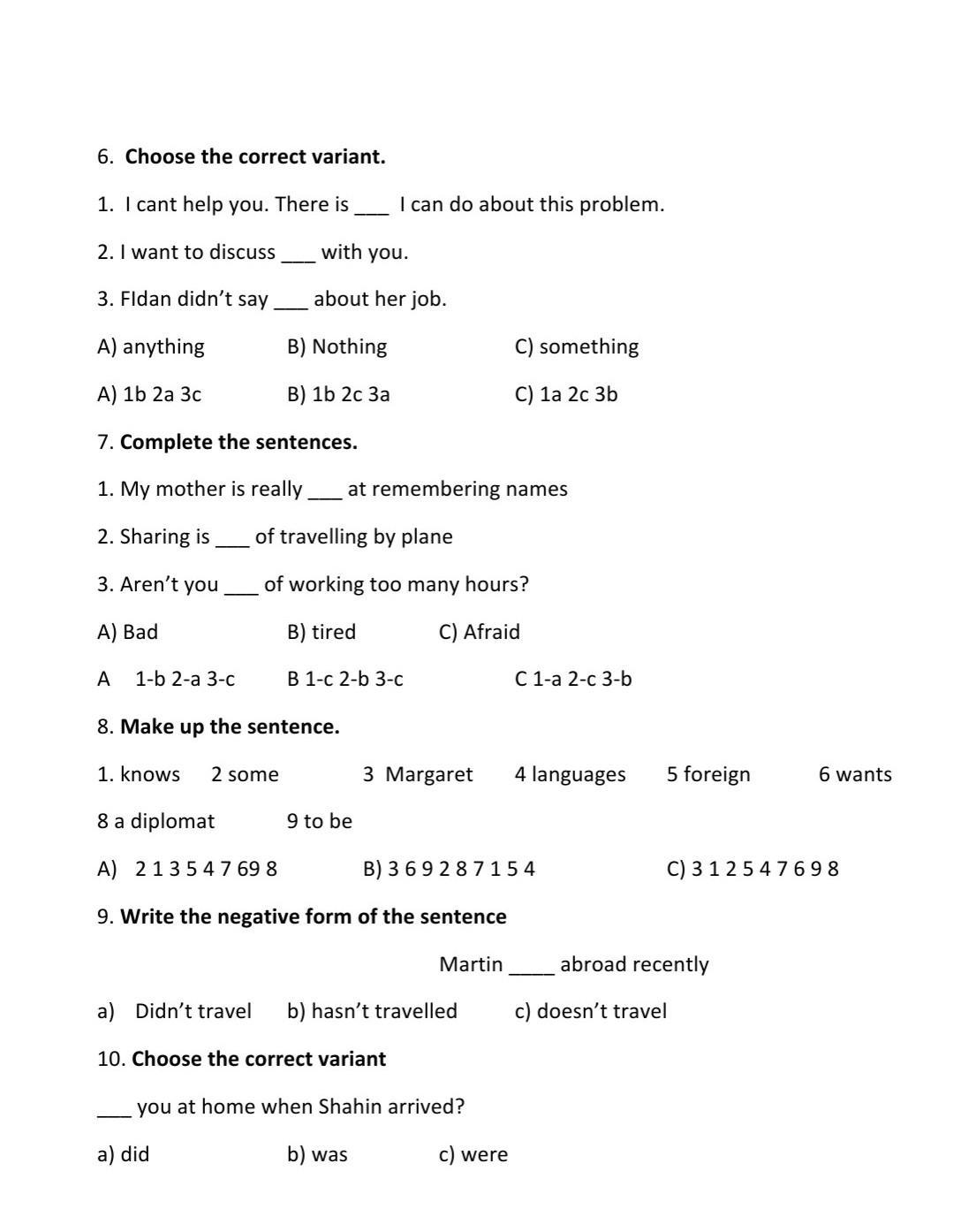 Тут B потому что время не указано и Martin это he, а это значит с приставкой s (hasn't).