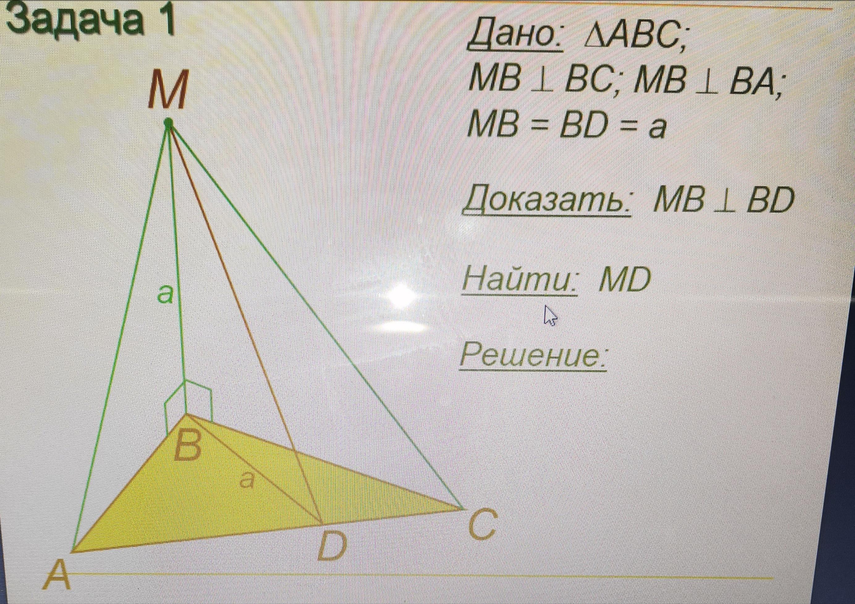 D∈AC ⇒ D∈(ABC) ⇒MB ⊥BD что и требовалось доказать