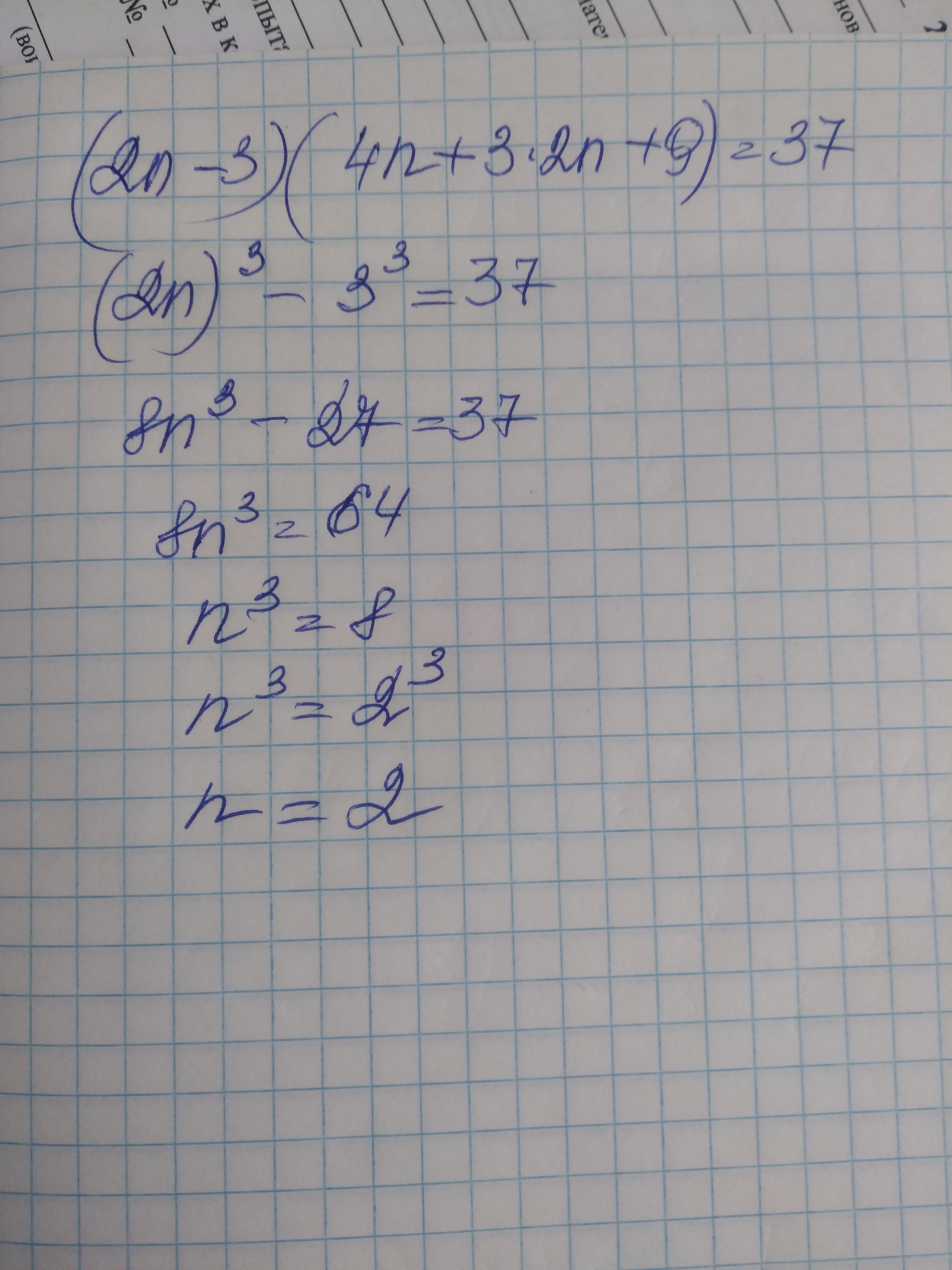 (2n – 3)(4n + 3 ∙ 2n + 9) = 37