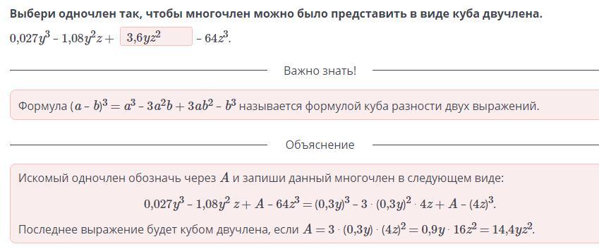 – 64z3 көпмүшесі екімүшенің кубы болатындай етіп, тиісті бірмүшені таңда.