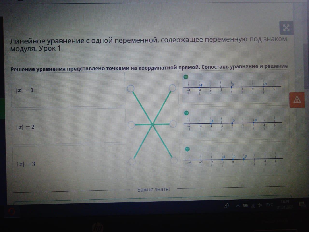 Решение уравнения представлено точками на координатной прямой. Сопоставь уравнение и решение