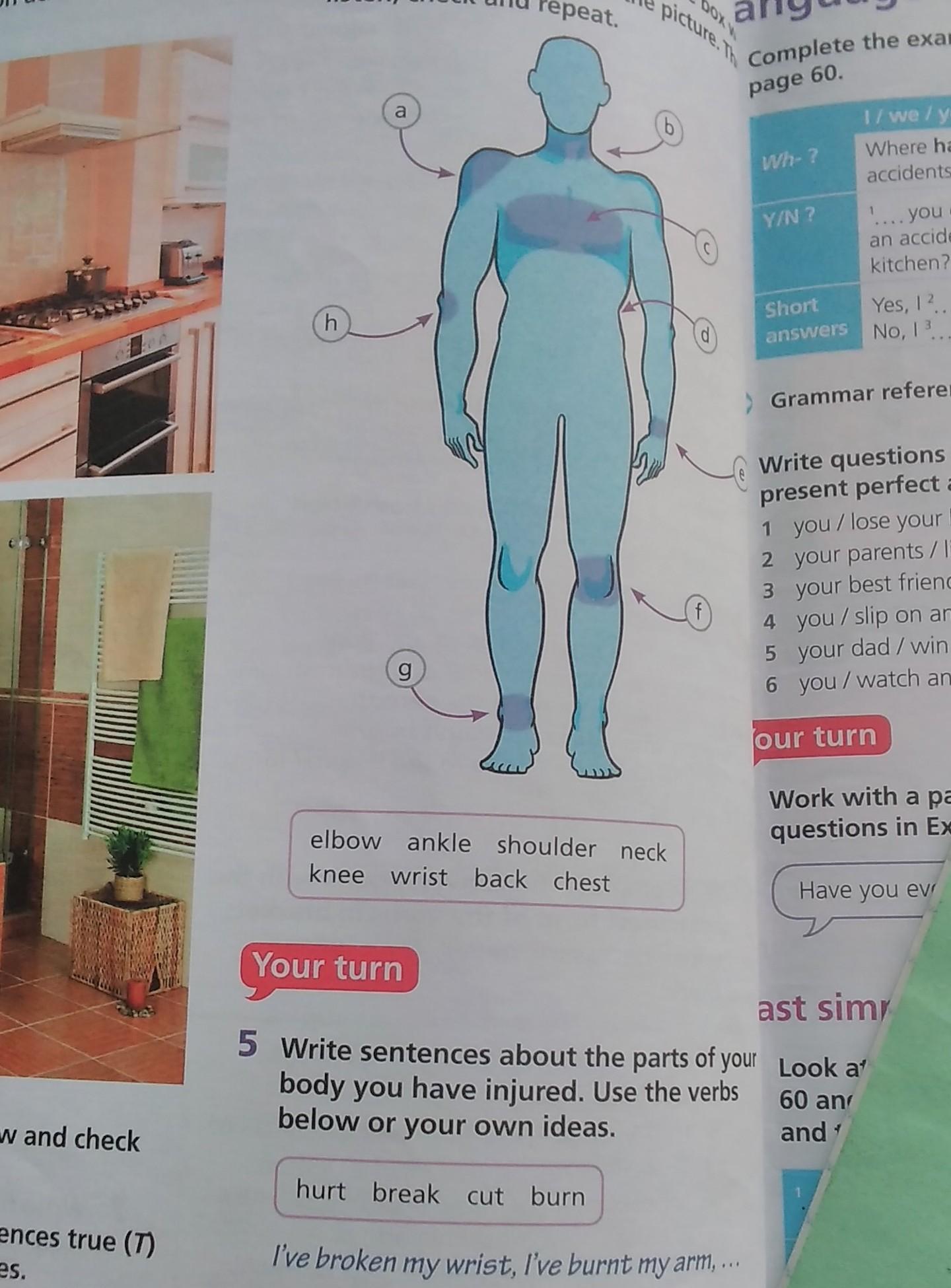 a-shoulder , b-neck , c-chest , d-back , e-wrist , f-knee , g-ankle , h-elbow