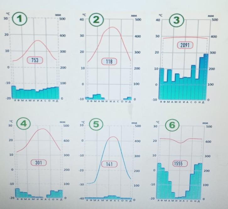 Какой цифрой на рисунке обозначена климатическая диаграмма: