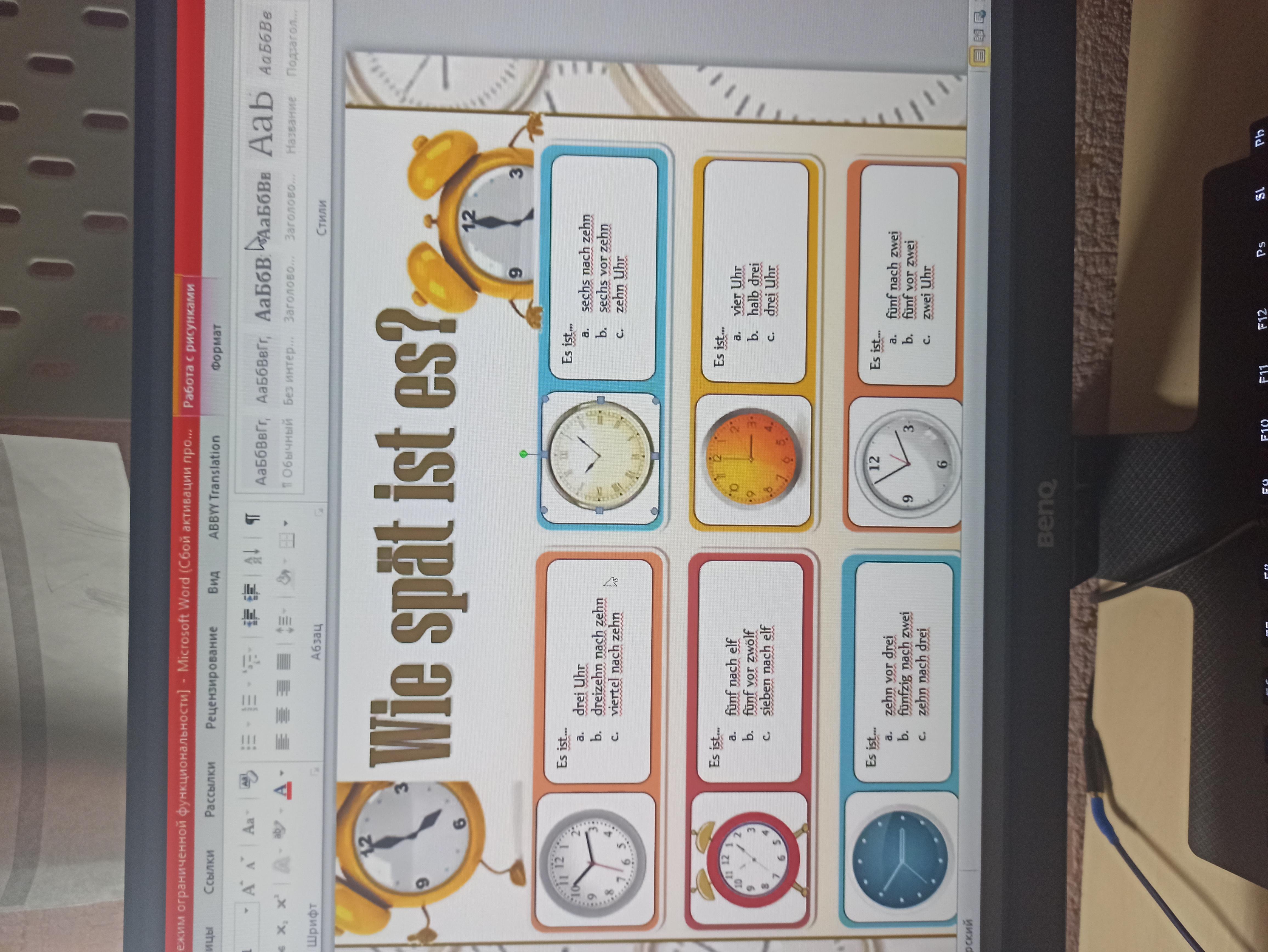 2.)красный будильник - а (es ist fünf nach elf )