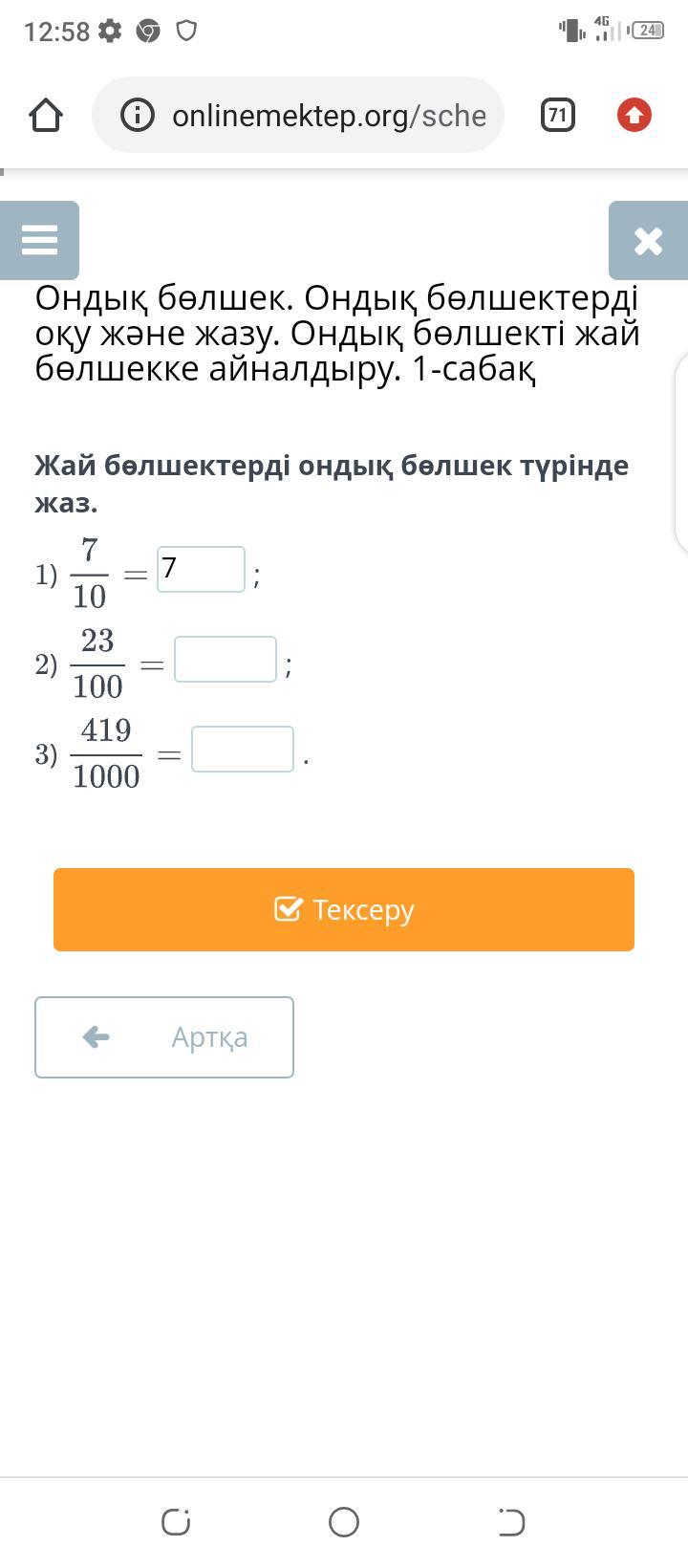 Тақырыбы : Ондық бөлшек. Ондық бөлшектерді оқу және жазу. Ондық бөлшекті жай бөлшекке айналдыру. 1-сабақ