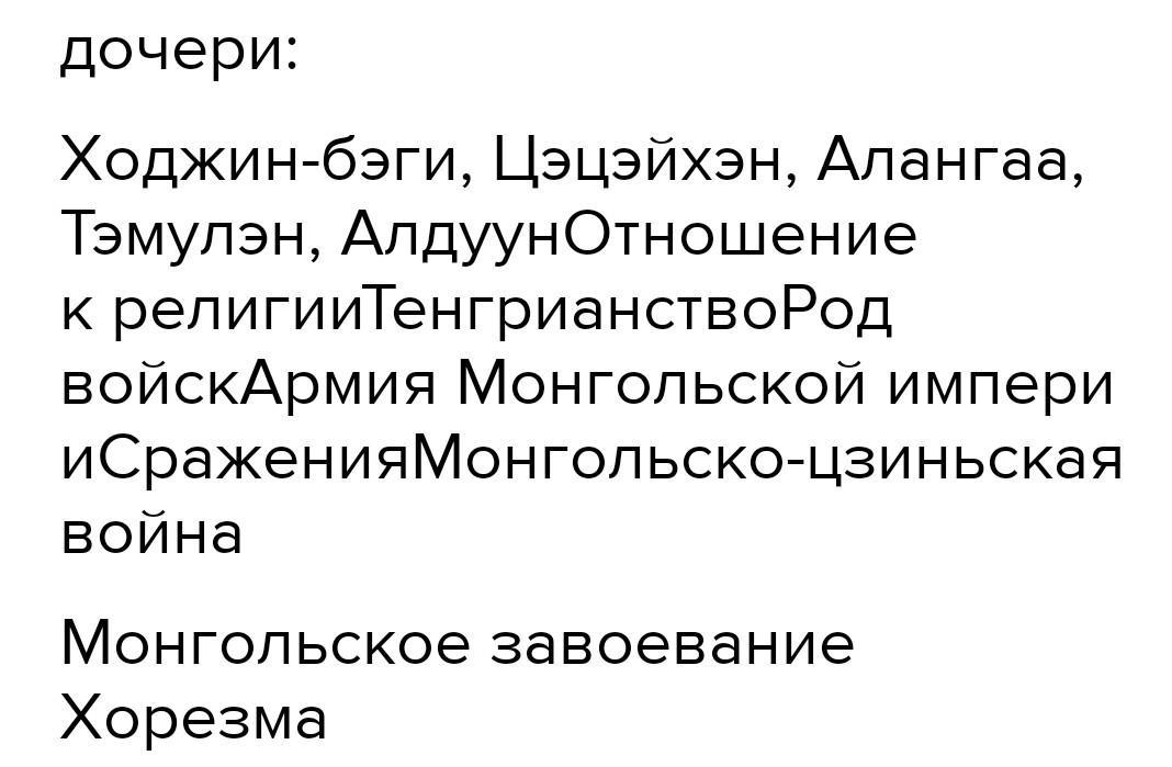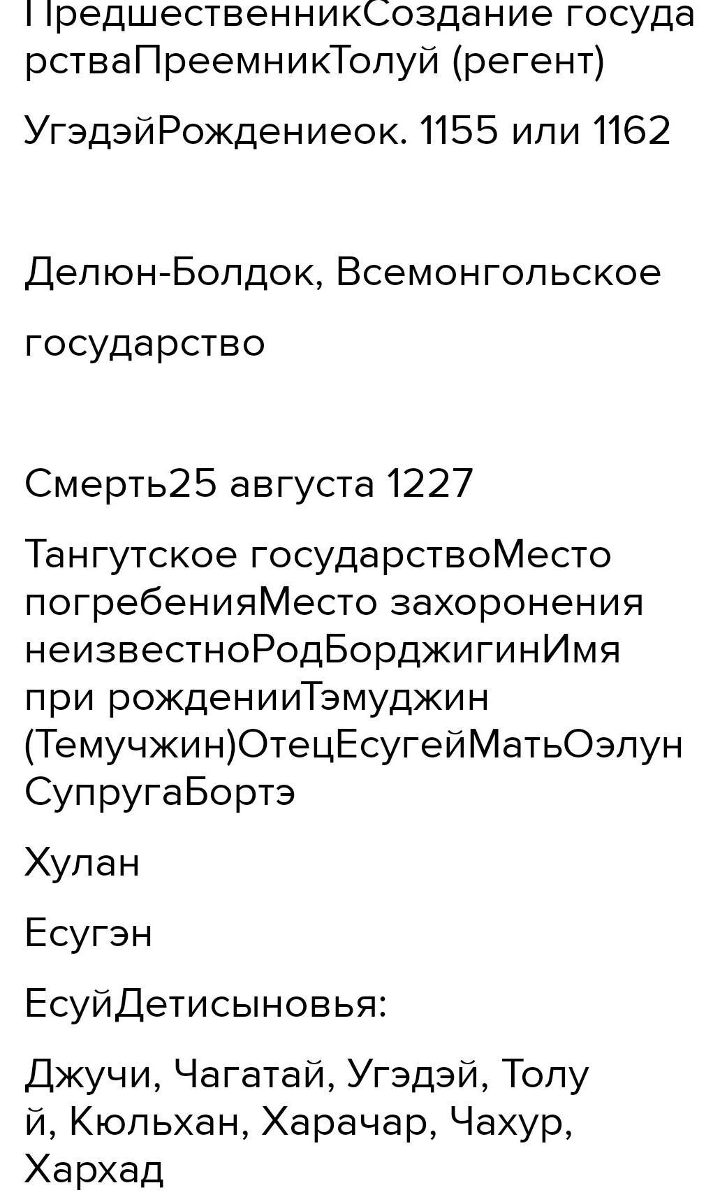 Тапсырма 1.Шыңғыс ханның Жетісута жорык жасаудағы максаты . А ) Берілген жауаптардың барлығы дұрыс В ) Билігін күшейту С ) Құнарлы , жайылымдык жерлер мен гүлденген қалаларды иелену і тартысты болдырмау Е ) Аксүйектердің карсылыктарын токтату 2 Шыңғыс хан Отырардың билеушісі Қайырханға қанша адамнан тұратын сауда керуенін жіберді А ) 697 адам В ) 450 адам с ) 317 адам до 146 адам E ) 800 адам Сырдария бойындағы қалалардың жеңілуі Шынгыс ханға қай мемлекетті бағындырууга жол ашты ? А ) Иран В ) Орыс князьдыктары С ) Араб елдері ДМәуереннахр E ) Үндістан