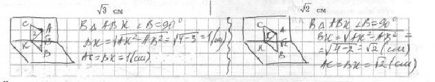 Точка А расположена от линии пересечения на 2 см от линии пересечения двух перпендикулярных плоскостей. Найдите расстояние от А до первой плоскости, если расстояние от А до второй плоскости равна: