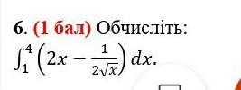 Обчисліть: ∫_1^4▒〖(2x-1/(2√x))dx.〗