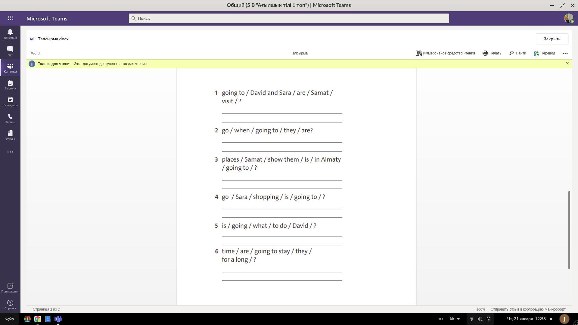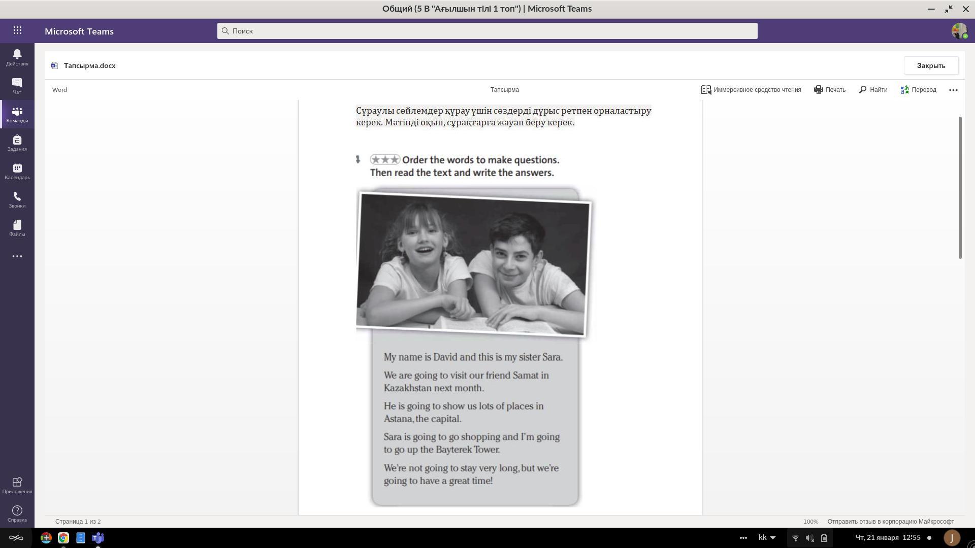 3. Is Samat going to show them places in Almaty? — No, he isn't. He's going to show them places in Astana.