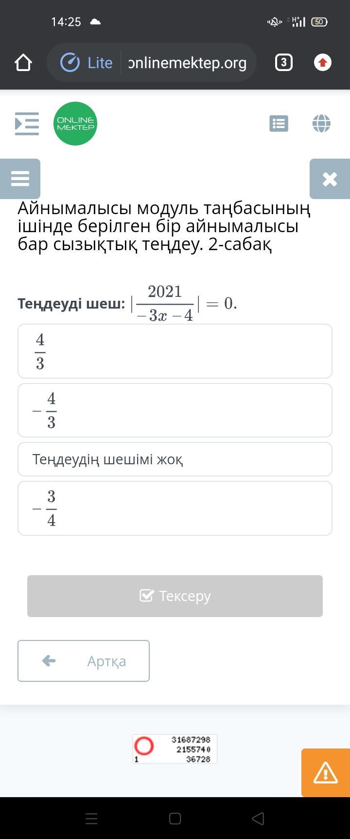 Ответ: Нету решения этого уравнения Теңдеудің шешімі жоқ