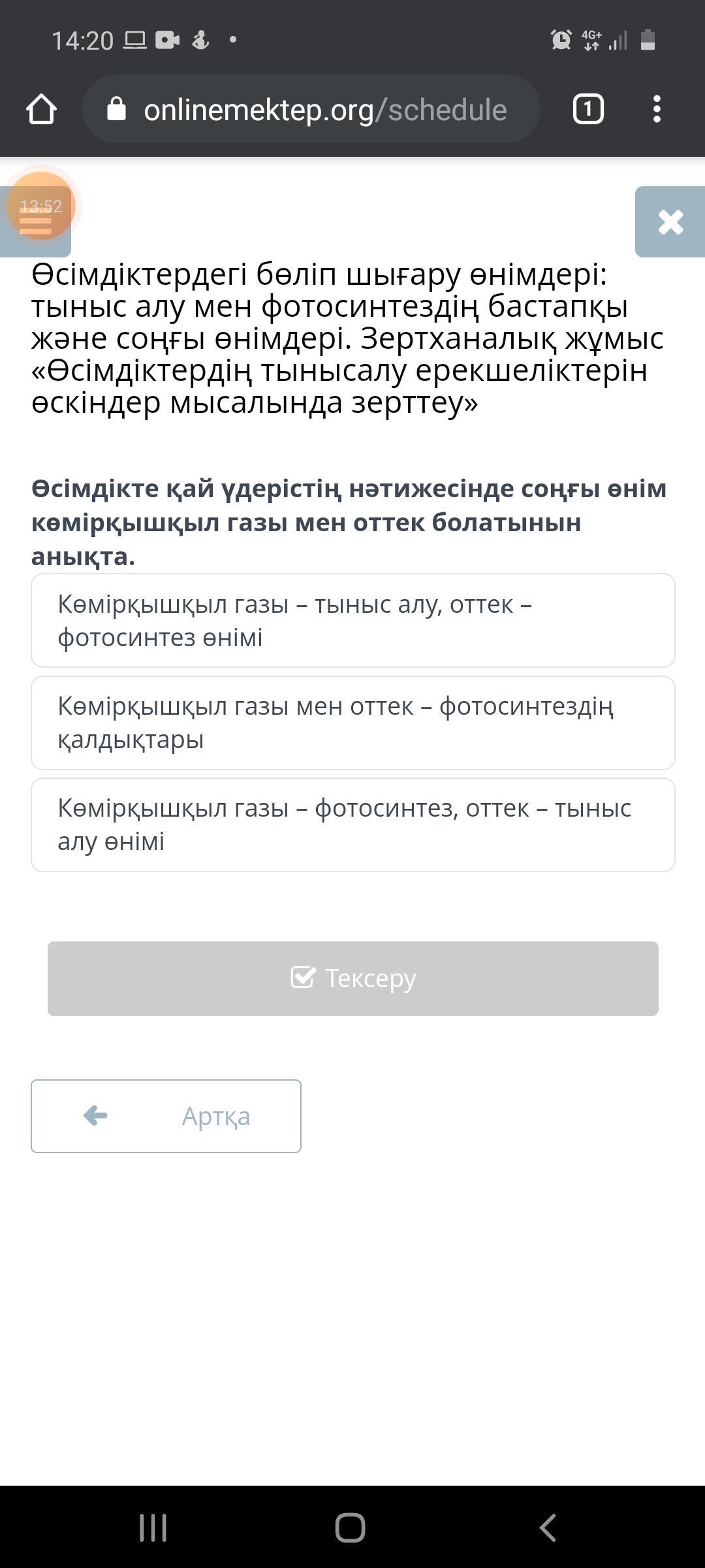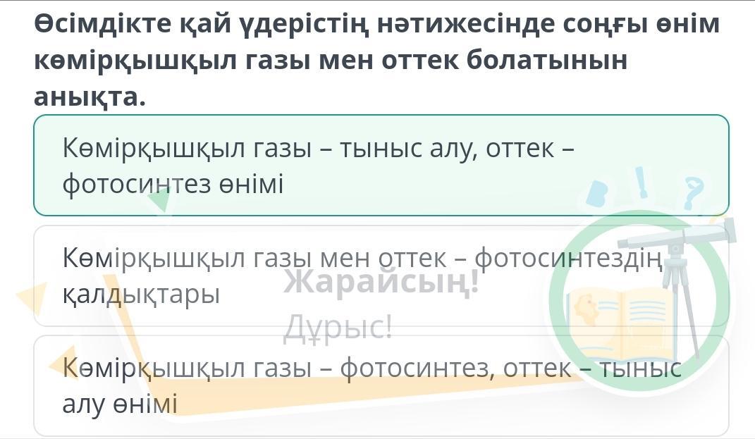 Көмірқышқыл газы – тыныс алу, оттек – фотосинтез өнімі