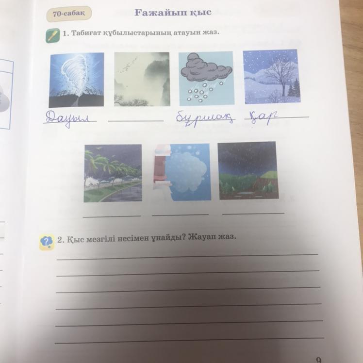 Дауыл, тұман, бұршақ, қар, жел, аяз, жаңбыр.