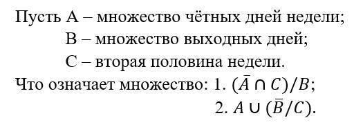 - множество четных дней недели, а также рабочих дней в первой половине недели