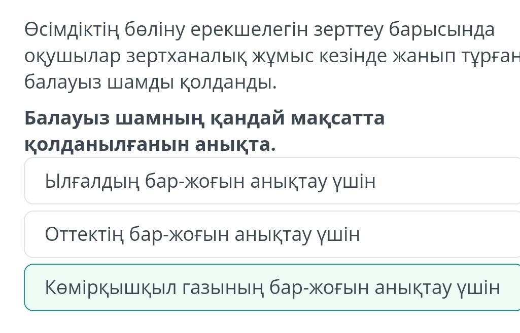 3. Көмірқышқыл газының бар-жоғын анықтау үшін