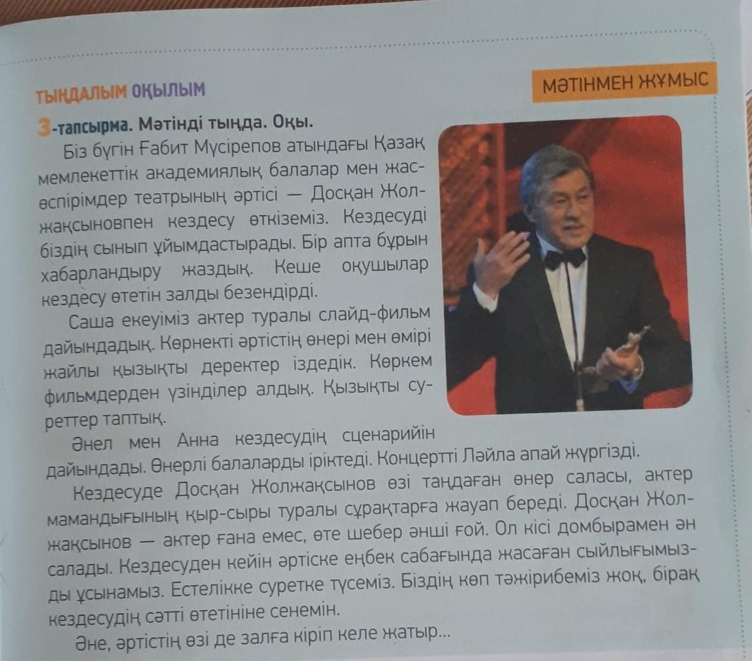 5-тапсырма. Жұптық жұмыс. Мәтінге сүйеніп, әртіспен кездесудің жоспа-