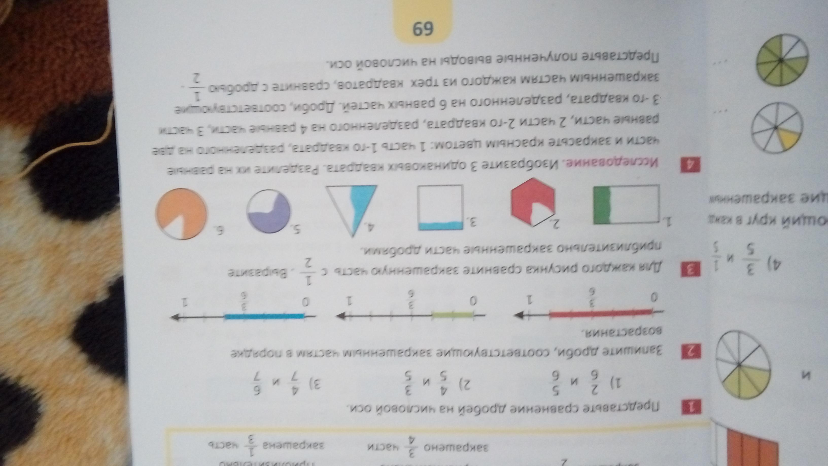 четвертое задание - если ты возьмешь 3 квадрата, то у всех квадратов будет закрашена только половина, значит дробь 1/2 будет равна 1/2(у первого квадрата), будет равна 2/4 у второго квадрата, 3/6 у третьего квадрата.