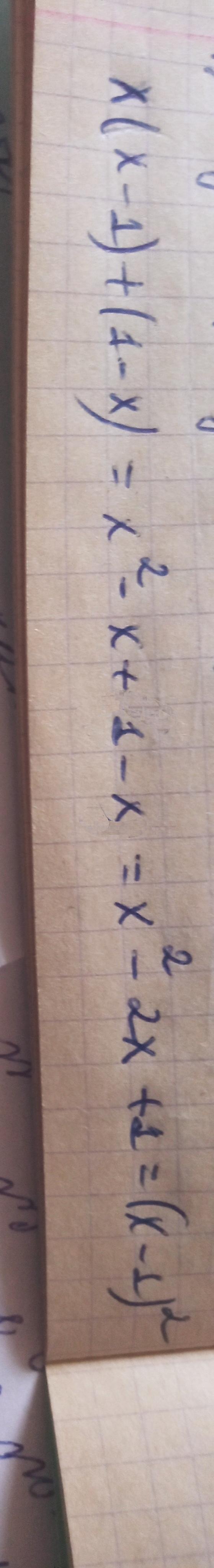 x(x-1)+(1-x)=x×x-x×1+1-x=x²-x+1-x=x²-x-x+1=x²-2x+1