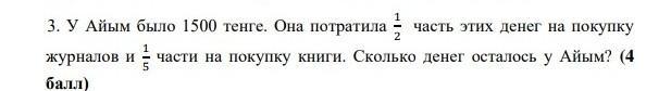 ½ от 1500 это половина то есть 1500 : 2 = 750 а ⅕ это 1500 : 5 = 300 . 750 + 300 = 1050 . 1500 - 1050 = 450