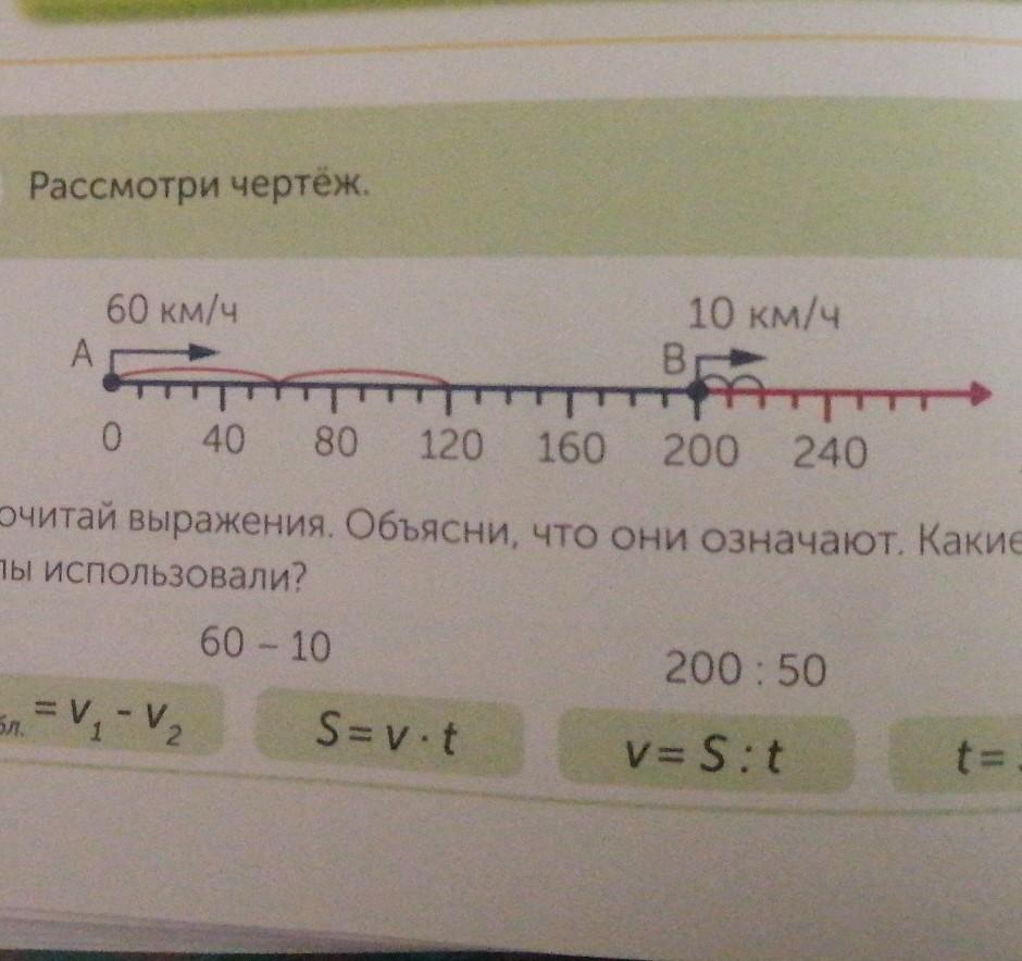 Расмотри чертёж. Прочитай выражения. Объясни, что они означают. Какие формулы использовали?