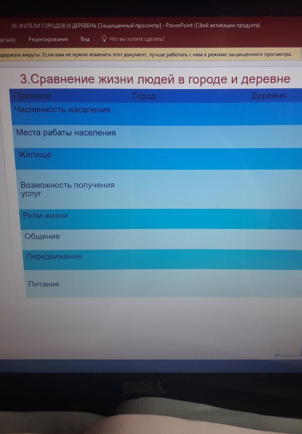 - Ритм жизни: Город - быстрый; Деревня - медленный;