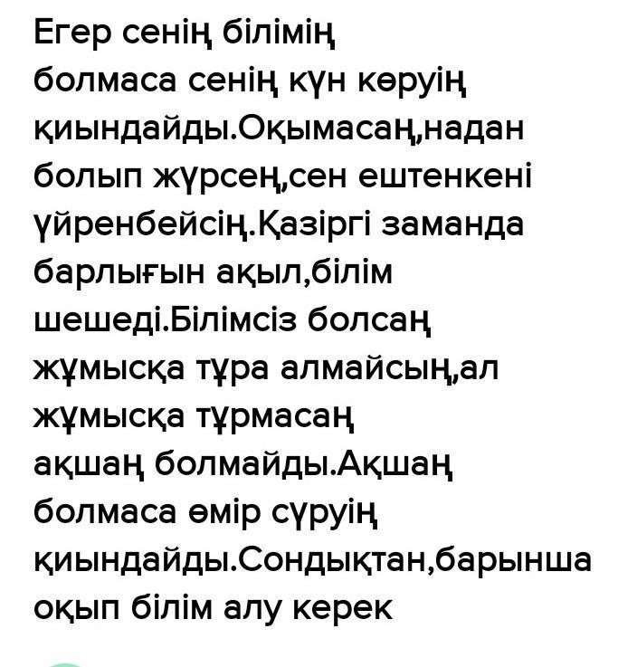 деген дана Абай атамыздан қалған нақыл сөздің адам өмірінде оймақтай ойып орын алатыны сөзсіз. Әрине, біліммен көзің ашылады, қоршаған әлемді, жаратылысты танисың. Содан қалған болар «Оқымаса бір бала, оқыса екі бала». Өнер – білім өн бойыңа мектеп табалдырығын аттап басқалы жинала бермек, толыса бермек. Мәпелеп өсірген әке- шешең, алғашқы тәрбиешілерің, отбасыңда қалып , енді сен білім нәрінен, тұнығынан сусындататын, киелі мекен, мектептің, төрінен табыласың.