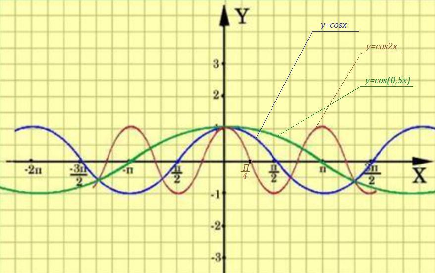 y=cos(1/2x)
