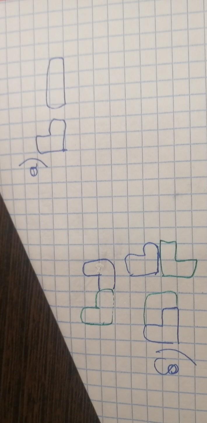 б) Из двух равных уголков можно составить разные фигуры. Нарисуйте их в тетради. Может ли среди этих фигур быть прямоугольник?