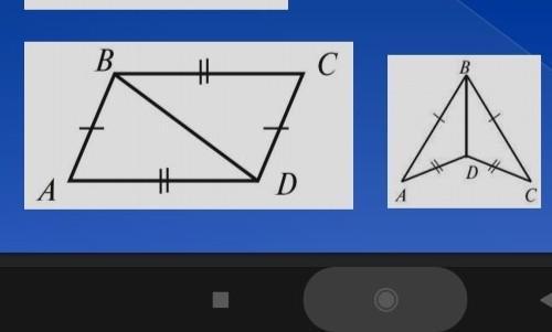 1) ΔABD = ΔBCD по третьему признаку (по трем сторонам).