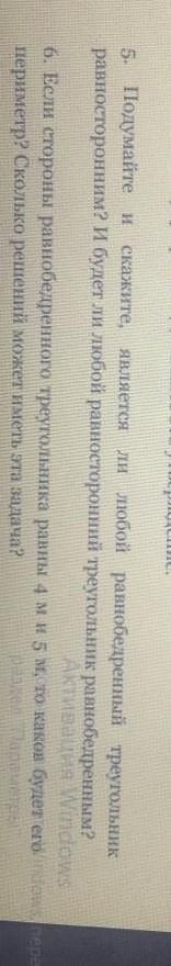 Срочно 5 и 6 зделать Подумайте и скажите является ли любой ровной без равнобедренный треугольник равносторонним и будет ли любой равносторонний треугольник равнобедренным