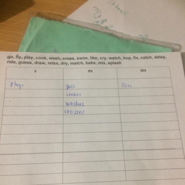 cooks, likes, rides, draws, bakes, swims, delays