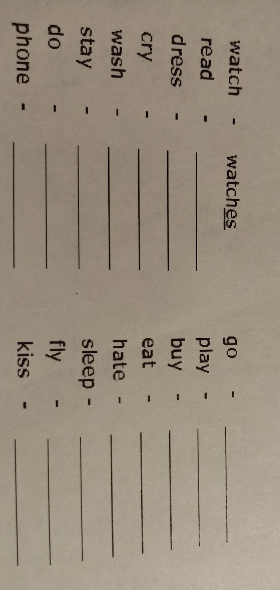 Если глагол заканчивается на гласную букву то пишется es. Исключениями являются слова заканчивающиеся на букву s. В них также пишется в конце es